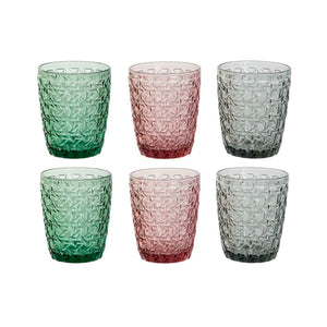 Set de Vasos DKD Home Decor Verde Gris Rosa Cristal Con relieve 240 ml (6 Unidades)