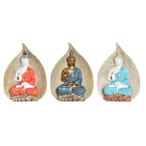 Figura Decorativa DKD Home Decor Azul Rojo Naranja Dorado Buda Oriental 15,5 x 5 x 20,7 cm (3 Unidades)