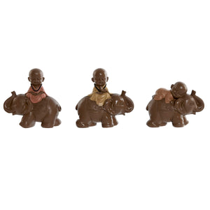 Figura Decorativa Home ESPRIT Marrón Naranja Coral Lima Resina Monje Oriental 13 x 6 x 12,5 cm (3 Unidades)