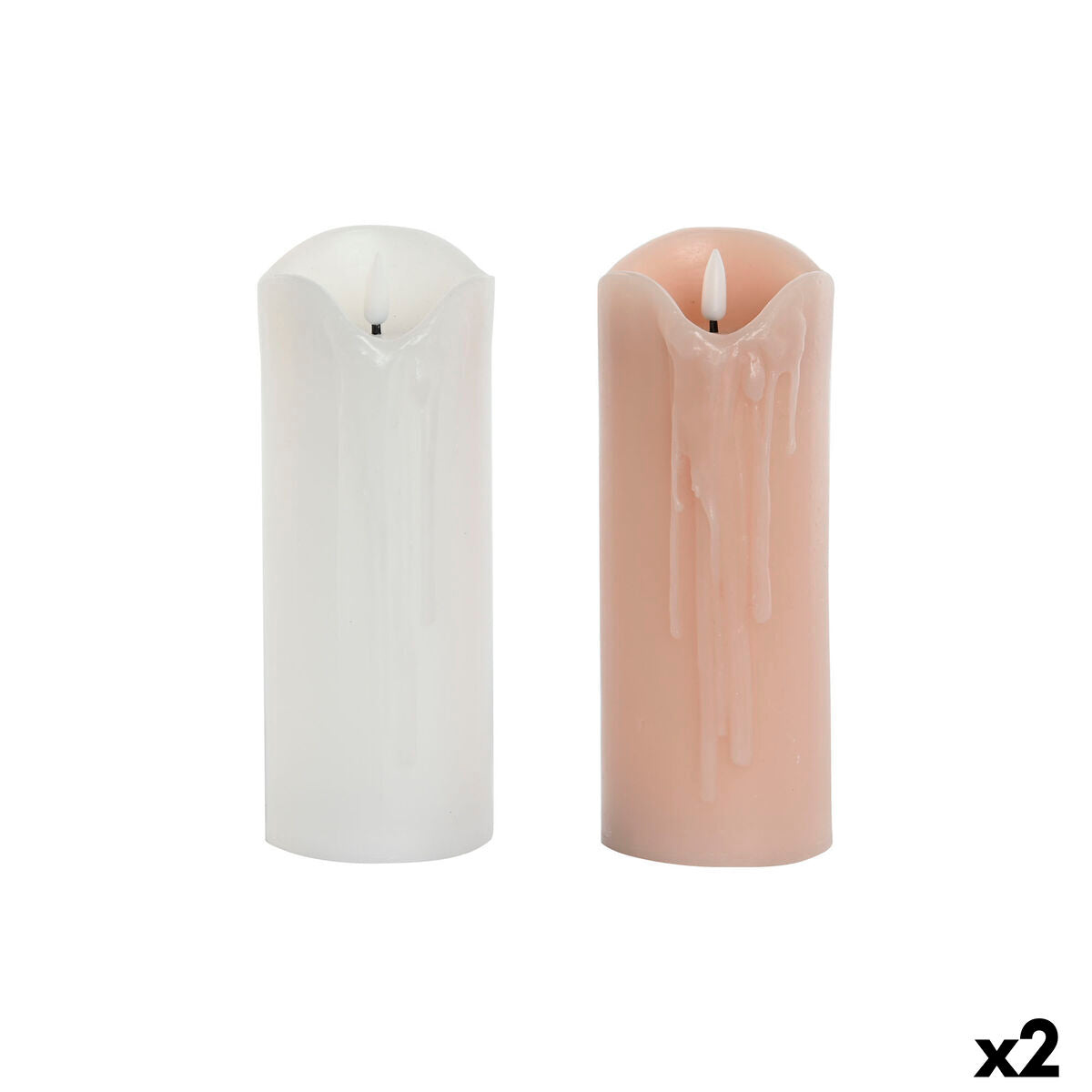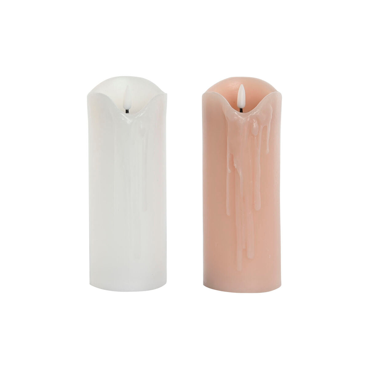 Vela LED DKD Home Decor Blanco Rosa claro 7.5 x 7.5 x 20 cm 7,5 x 7,5 x 20 cm (AA) (2 Unidades)