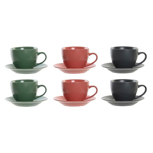 Juego de 6 Tazas con Plato DKD Home Decor Verde Rosa Gris oscuro Gres 150 ml 16 x 17 x 35 cm
