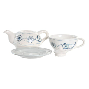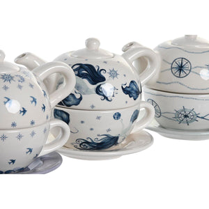 Juego de Tetera DKD Home Decor Azul Blanco 750 ml Dolomita (3 Unidades)