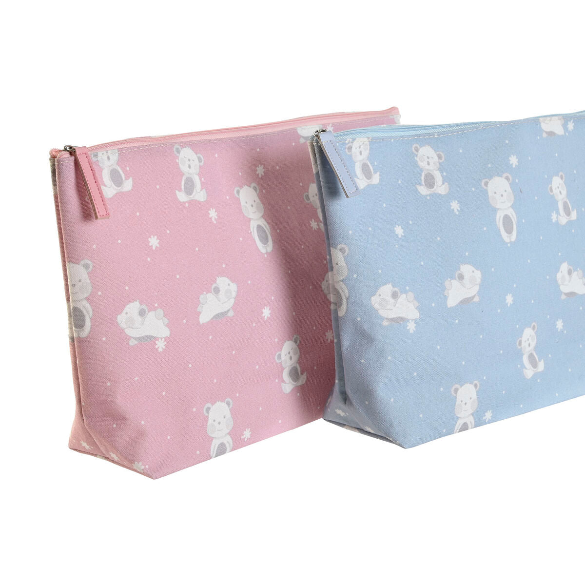 Neceser de Viaje DKD Home Decor Azul Rosa polialgodon osos 33 x 8 x 21 cm (2 Unidades)