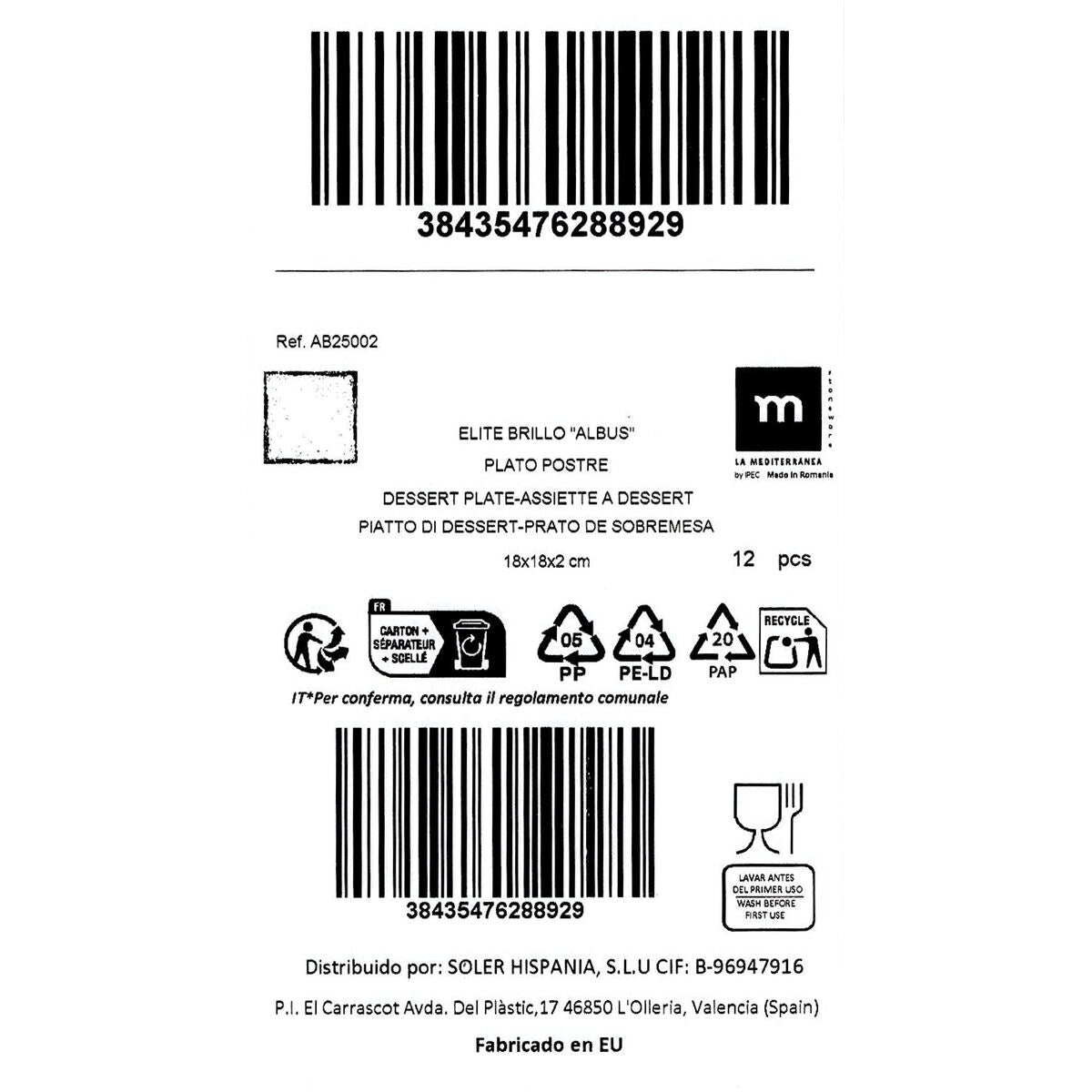 {"id":15341514555727,"title":"Dessert dish La Mediterránea Albus 18 x 18 x 2 cm (12 Units)","handle":"plato-de-postre-la-mediterranea-albus-18-x-18-x-2-cm-12-unidades","description":"If you like to take care of every detail in your home and own the latest products that will make your life easier, purchase \u003cb\u003eDessert dish La Mediterránea Albus 18 x 18 x 2 cm (12 Units)\u003c\/b\u003e at the best price.\u003cbr\u003e\u003cbr\u003e\u003cul\u003e\u003cli\u003eUnits: 12 Units\u003c\/li\u003e\u003cli\u003eApprox. dimensions: 18 x 18 x 2 cm\u003c\/li\u003e\u003c\/ul\u003e\u003cb\u003eFrom 2,97 \/ u\u003c\/b\u003e\u003cbr\u003e\u003cbr\u003e\u003cb\u003eGeneral Product Safety Regulations information:\u003c\/b\u003e\u003cbr\u003eSOLER HISPANIA S.L.U.\u003cbr\u003eAVDA. DEL PLASTIC 17, OLLERIA, VALENCIA (SPAIN)\u003cbr\u003e46850 - Olleria\u003cbr\u003e+34962208151\u003cbr\u003einfo@solerhispania.com\u003cbr\u003ehttps:\/\/www.solerhispania.com\u003cbr\u003e","published_at":"2025-05-02T16:07:28+02:00","created_at":"2025-05-02T16:07:28+02:00","vendor":"La Mediterránea","type":"Hogar y cocina, Cubertería, Vajilla y Cristalería","tags":["category-reference-2403","category-reference-2449","category-reference-2726","Condición_NEW","Marca_La Mediterránea","Precio_20 - 50"],"price":3569,"price_min":3569,"price_max":3569,"available":false,"price_varies":false,"compare_at_price":4456,"compare_at_price_min":4456,"compare_at_price_max":4456,"compare_at_price_varies":false,"variants":[{"id":55029619622223,"title":"Default Title","option1":"Default Title","option2":null,"option3":null,"sku":"S2237330","requires_shipping":true,"taxable":true,"featured_image":null,"available":false,"name":"Dessert dish La Mediterránea Albus 18 x 18 x 2 cm (12 Units)","public_title":null,"options":["Default Title"],"price":3569,"weight":4970,"compare_at_price":4456,"inventory_management":"shopify","barcode":"4899888788072","requires_selling_plan":false,"selling_plan_allocations":[]}],"images":["\/\/acreciashop.com\/cdn\/shop\/files\/s2237330_1746182351-remove-background_icon0_593ef676-b8ee-44bb-a032-6b7385b5dbf9.jpg?v=1755977839","\/\/acreciashop.com\/cdn\/shop\/files\/S2237330_1746182351-remove-background0_5988c28a-5b4b-4b4e-9de2-c991820f594f.jpg?v=1755977839","\/\/acreciashop.com\/cdn\/shop\/files\/S2237330_P00_7f1aee3e-5a9e-4f5c-aa92-24c8b35c5b0b.jpg?v=1755977840","\/\/acreciashop.com\/cdn\/shop\/files\/S2237330_P10_d4bd233f-7b65-4f69-be56-875fce06e6d5.jpg?v=1755977840"],"featured_image":"\/\/acreciashop.com\/cdn\/shop\/files\/s2237330_1746182351-remove-background_icon0_593ef676-b8ee-44bb-a032-6b7385b5dbf9.jpg?v=1755977839","options":["Title"],"media":[{"alt":"V3HA55E1F725C380ACBABEDD8D858FE83DFR5604485P1","id":69935579726159,"position":1,"preview_image":{"aspect_ratio":1.0,"height":1200,"width":1200,"src":"\/\/acreciashop.com\/cdn\/shop\/files\/s2237330_1746182351-remove-background_icon0_593ef676-b8ee-44bb-a032-6b7385b5dbf9.jpg?v=1755977839"},"aspect_ratio":1.0,"height":1200,"media_type":"image","src":"\/\/acreciashop.com\/cdn\/shop\/files\/s2237330_1746182351-remove-background_icon0_593ef676-b8ee-44bb-a032-6b7385b5dbf9.jpg?v=1755977839","width":1200},{"alt":"V3H8C64CDFB578D0B1591F45DE77CF581BDR5604490P2","id":69935579758927,"position":2,"preview_image":{"aspect_ratio":1.0,"height":1200,"width":1200,"src":"\/\/acreciashop.com\/cdn\/shop\/files\/S2237330_1746182351-remove-background0_5988c28a-5b4b-4b4e-9de2-c991820f594f.jpg?v=1755977839"},"aspect_ratio":1.0,"height":1200,"media_type":"image","src":"\/\/acreciashop.com\/cdn\/shop\/files\/S2237330_1746182351-remove-background0_5988c28a-5b4b-4b4e-9de2-c991820f594f.jpg?v=1755977839","width":1200},{"alt":"V3H26C8AF02CB5BC8C103F73FE1EB7BD38DR5604495P3","id":69935579791695,"position":3,"preview_image":{"aspect_ratio":1.0,"height":1200,"width":1200,"src":"\/\/acreciashop.com\/cdn\/shop\/files\/S2237330_P00_7f1aee3e-5a9e-4f5c-aa92-24c8b35c5b0b.jpg?v=1755977840"},"aspect_ratio":1.0,"height":1200,"media_type":"image","src":"\/\/acreciashop.com\/cdn\/shop\/files\/S2237330_P00_7f1aee3e-5a9e-4f5c-aa92-24c8b35c5b0b.jpg?v=1755977840","width":1200},{"alt":"V3H67B30247F49FEC0B4B29F915C25C526BR5604500P4","id":69935579824463,"position":4,"preview_image":{"aspect_ratio":1.0,"height":1200,"width":1200,"src":"\/\/acreciashop.com\/cdn\/shop\/files\/S2237330_P10_d4bd233f-7b65-4f69-be56-875fce06e6d5.jpg?v=1755977840"},"aspect_ratio":1.0,"height":1200,"media_type":"image","src":"\/\/acreciashop.com\/cdn\/shop\/files\/S2237330_P10_d4bd233f-7b65-4f69-be56-875fce06e6d5.jpg?v=1755977840","width":1200}],"requires_selling_plan":false,"selling_plan_groups":[],"content":"If you like to take care of every detail in your home and own the latest products that will make your life easier, purchase \u003cb\u003eDessert dish La Mediterránea Albus 18 x 18 x 2 cm (12 Units)\u003c\/b\u003e at the best price.\u003cbr\u003e\u003cbr\u003e\u003cul\u003e\u003cli\u003eUnits: 12 Units\u003c\/li\u003e\u003cli\u003eApprox. dimensions: 18 x 18 x 2 cm\u003c\/li\u003e\u003c\/ul\u003e\u003cb\u003eFrom 2,97 \/ u\u003c\/b\u003e\u003cbr\u003e\u003cbr\u003e\u003cb\u003eGeneral Product Safety Regulations information:\u003c\/b\u003e\u003cbr\u003eSOLER HISPANIA S.L.U.\u003cbr\u003eAVDA. DEL PLASTIC 17, OLLERIA, VALENCIA (SPAIN)\u003cbr\u003e46850 - Olleria\u003cbr\u003e+34962208151\u003cbr\u003einfo@solerhispania.com\u003cbr\u003ehttps:\/\/www.solerhispania.com\u003cbr\u003e"}