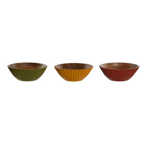 Saladier Home ESPRIT Jaune Vert Corail Bois de manguier 30 x 30 x 12 cm (3 Unités)