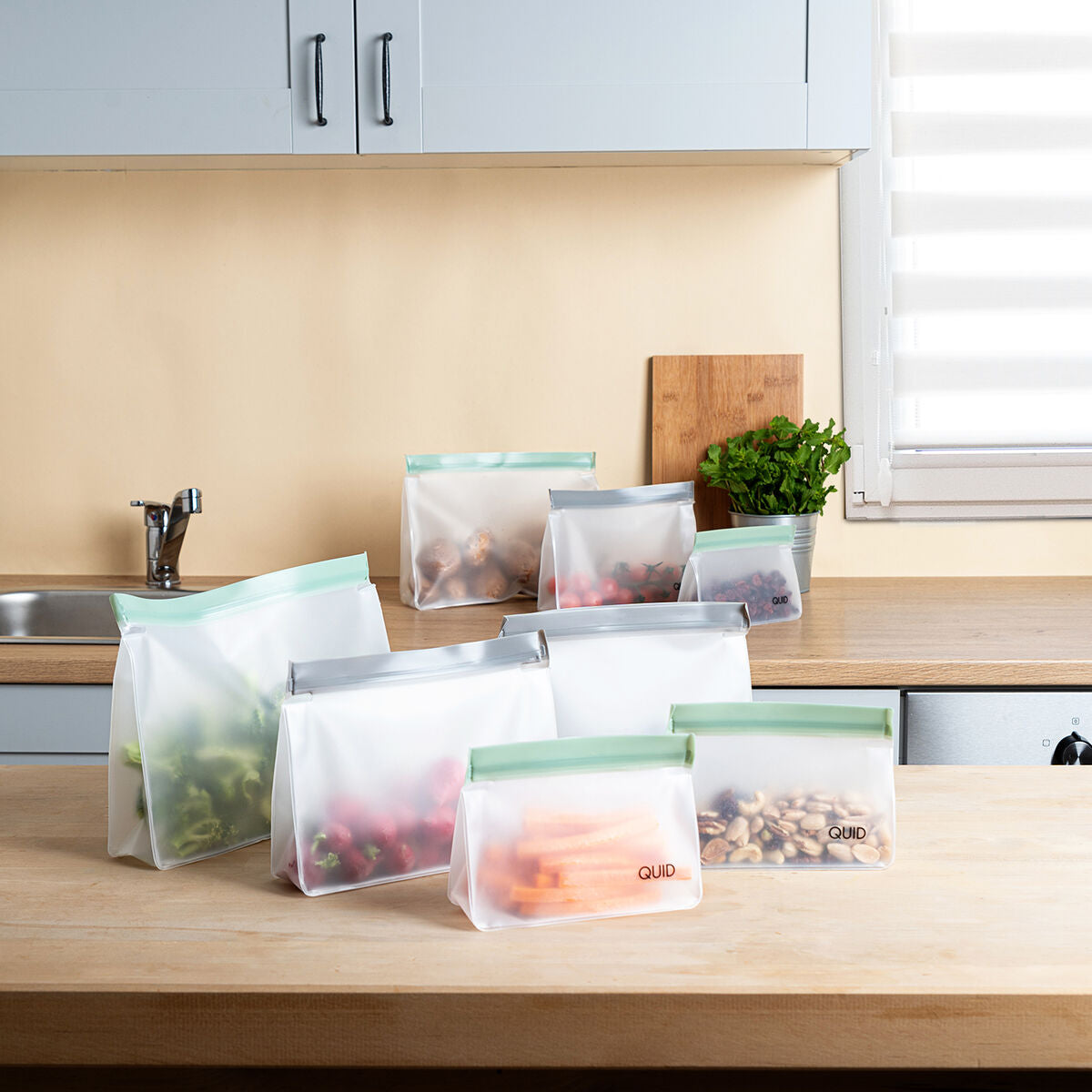 Ensemble de sacs alimentaires réutilisables Quid Rico Plastique Zip 8 Pièces