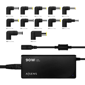 Chargeur d'ordinateur portable Aisens ASLC-90WAUTO-BK Universel