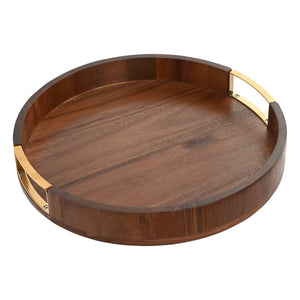 Plateau Home ESPRIT Doré Naturel Métal Acacia 35,5 x 35,5 x 5 cm