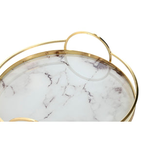 Jeux de plateaux Home ESPRIT Blanc Doré Métal Verre 30 x 30 x 6 cm (2 Unités)
