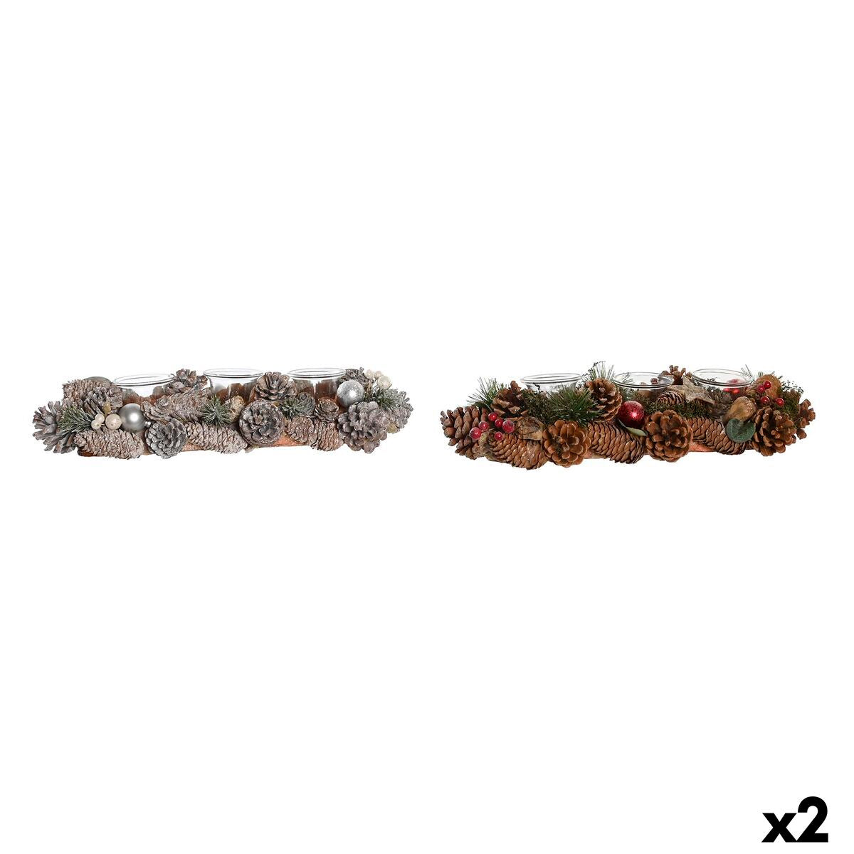 Bougeoirs de Noël DKD Home Decor Blanc Rouge Vert Verre 38 x 13 x 8,5 cm (2 Unités)