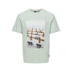 Camiseta Deportiva de Manga Corta Only & Sons Onskolton Reg Beach Surf Negro Verde