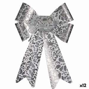 Lazo Krist+ Plateado Estampado 16 x 24 x 4 cm Adorno Navideño (12 Unidades)