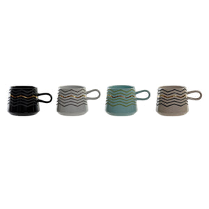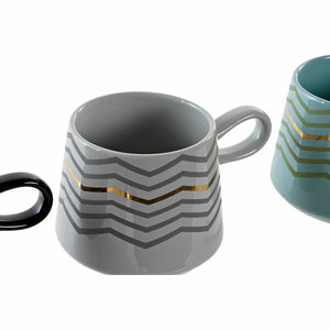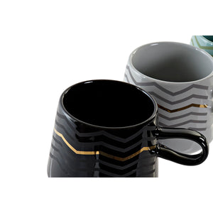 Tazza Mug DKD Home Decor Nero Grigio Azzurro Rosa Gres Moderno (400 ml) (4 Unità)