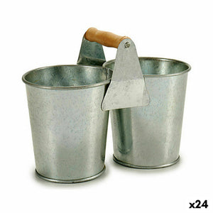 Vaso Ibergarden D60088-B Marrone Argentato Legno Zinco Doppia 20 x 15 x 10,2 cm (24 Unità)