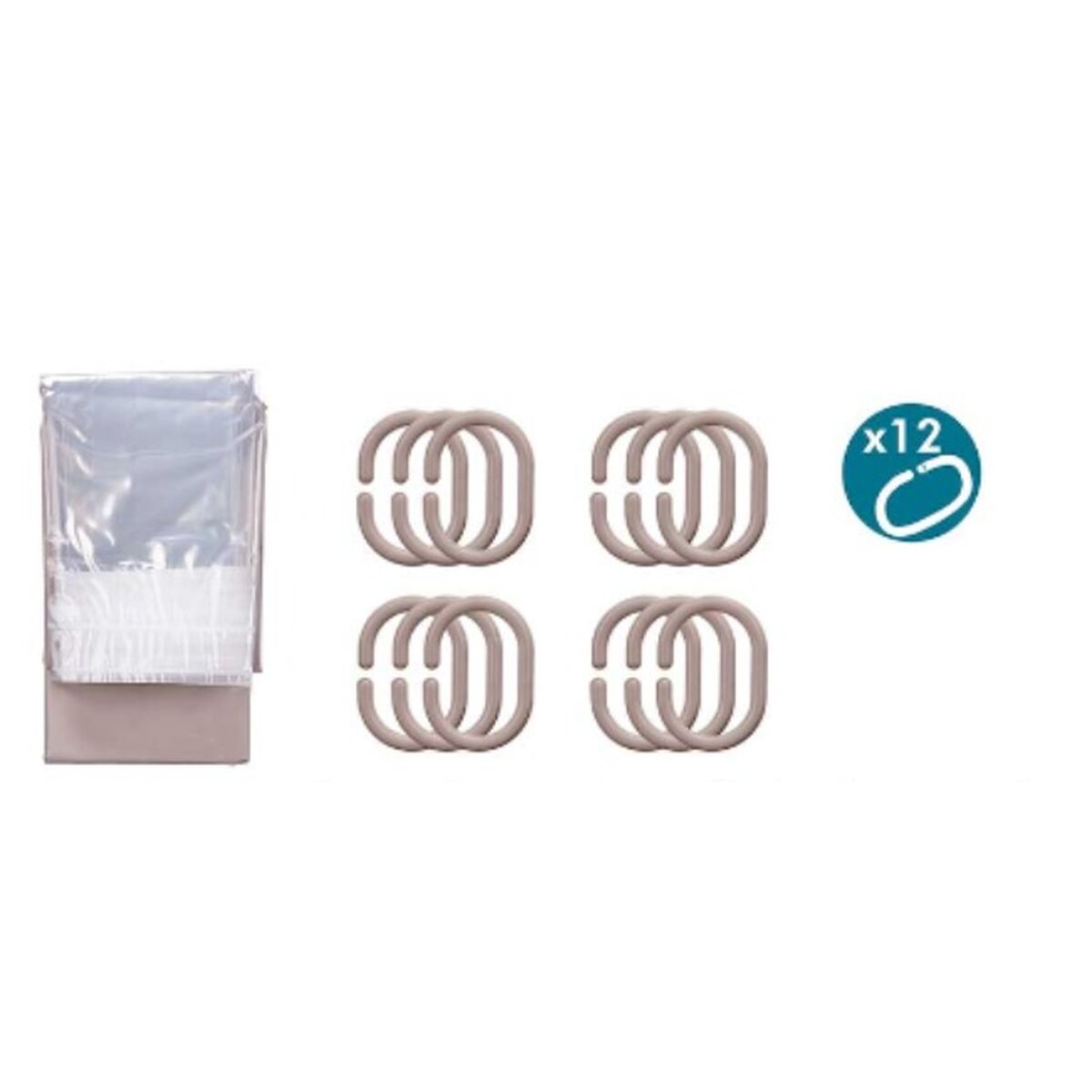 Cortina de Ducha Berilo Beige Transparente Plástico PEVA 180 x 180 cm 16 x 28,5 x 4 cm (12 Unidades)